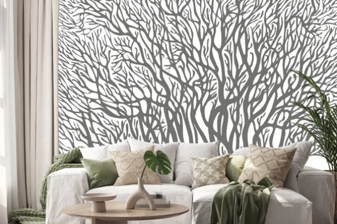Naklejka: Rysunek szarych drzew na białym tle
