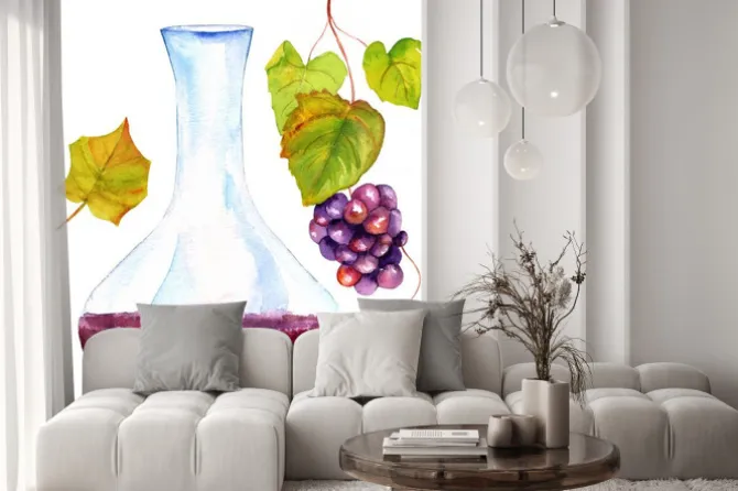 Be the first to review “Naklejka: Rysunki akwarela z karafki do wina, liści winorośli i winogron,” Anuluj pisanie odpowiedzi