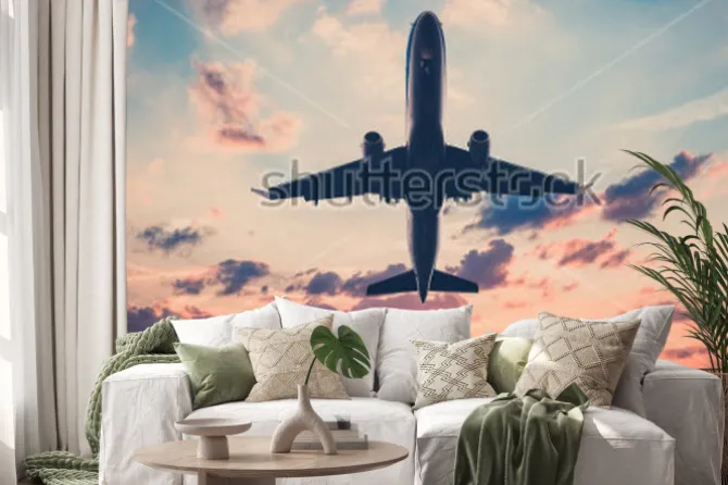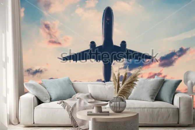 Naklejka: Samolot na zachodzie słońca niebo – samolot, odrzutowiec na tle