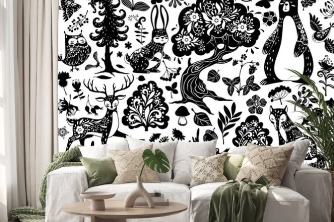 Naklejka: Scandinavian forest elements. nordic scandi style deer, hare