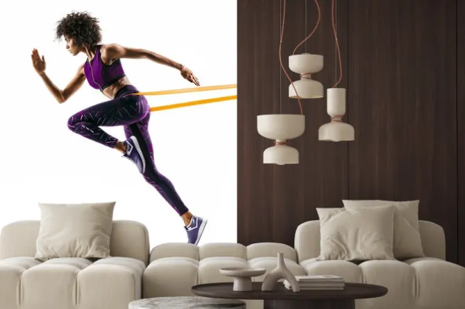 Naklejka: Silna dziewczyna w sylwetce za pomocą zespołu oporu. fotografia