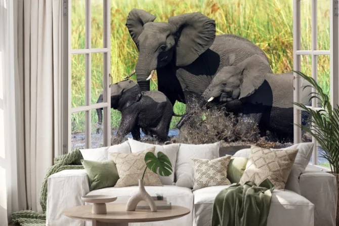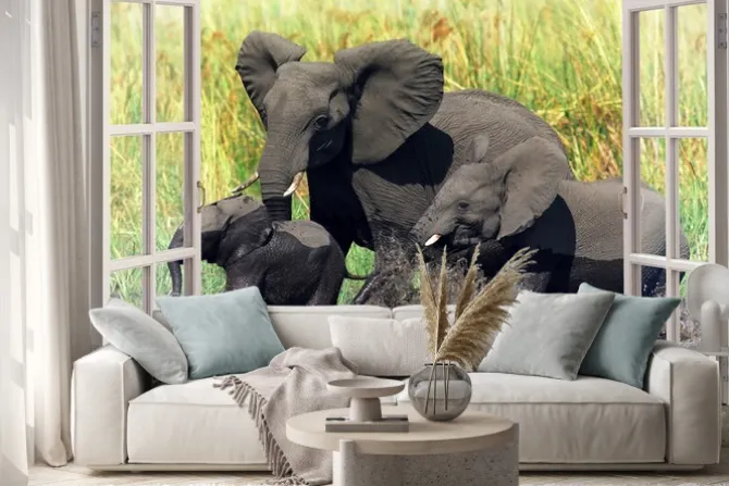 krajobrazy, safari, słonie, Afryka, trawa, okna