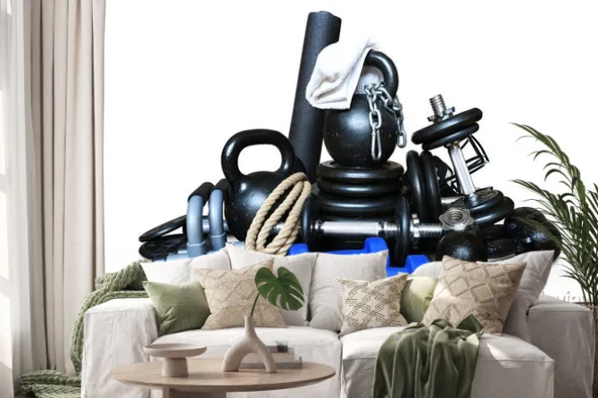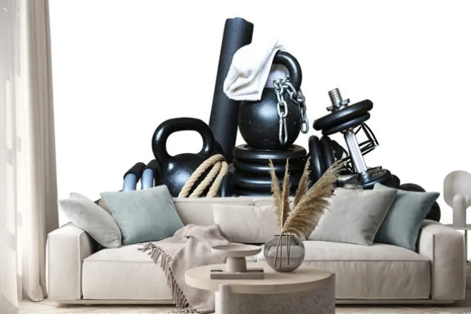 Naklejka: Sprzęt dla kulturystyki zebrane w kupie sport