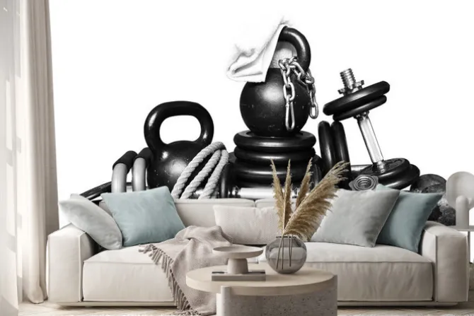Naklejka: Sprzęt dla kulturystyki zebrane w kupie sport