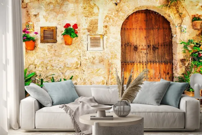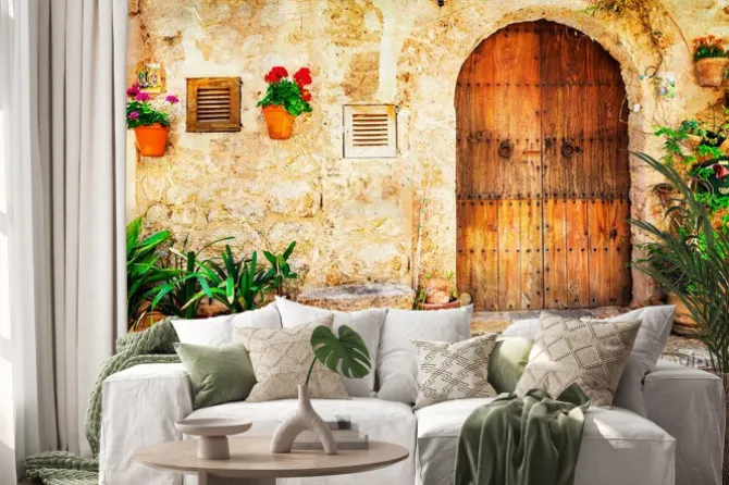 Naklejka: Stare klasyczne drzwi domu na majorce