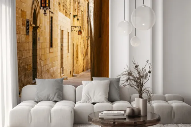 Naklejka: Starożytna wąska ulica w mdina maltańskim