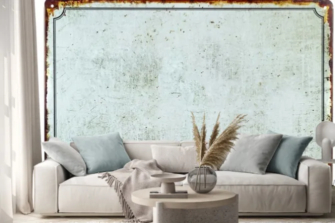 Naklejka: Stary pusty zardzewiały metalowy znak z tłem kopii przestrzeni
