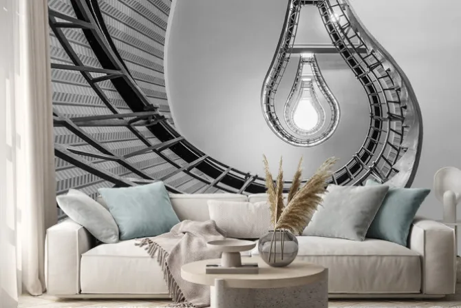 Naklejka: Streszczenie strzał z schody prowadzące do żarówkę jak o