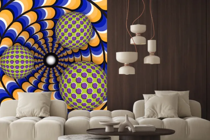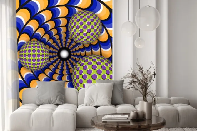 iluzja, tunele, piłka, żółty