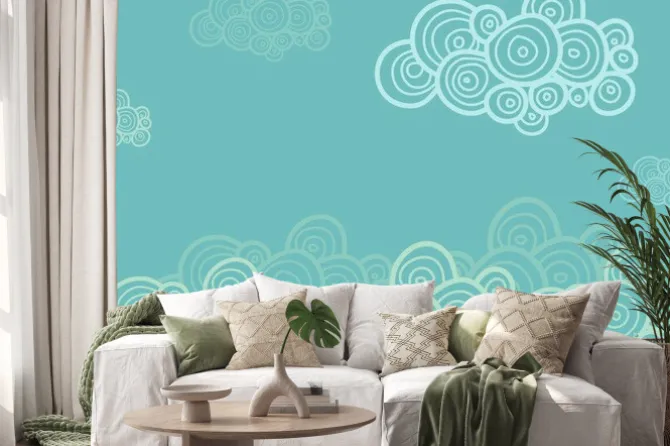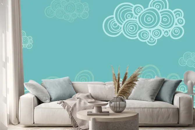 Naklejka: Stylizowane spiralne chmury na niebieskim tle