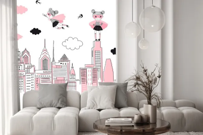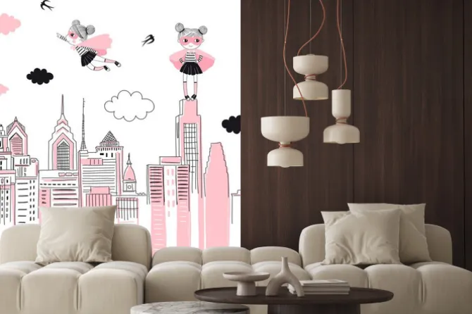 miasta, nowy jork, gwiazdy, pokój dziecięcy, pop art, różowy