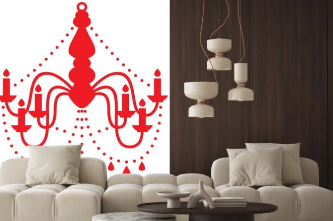 Naklejka: Świecznik czerwona sylwetka na białym tle