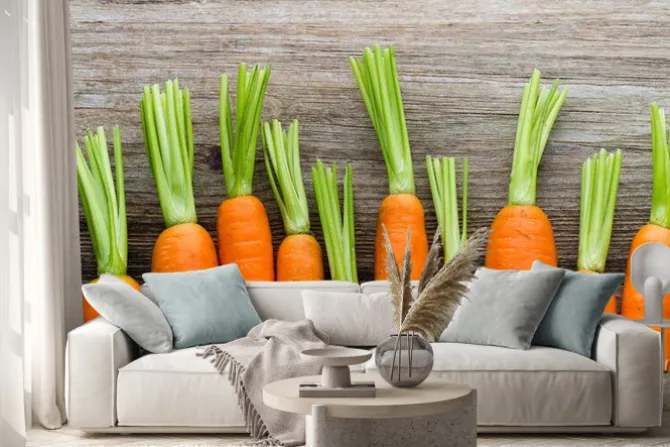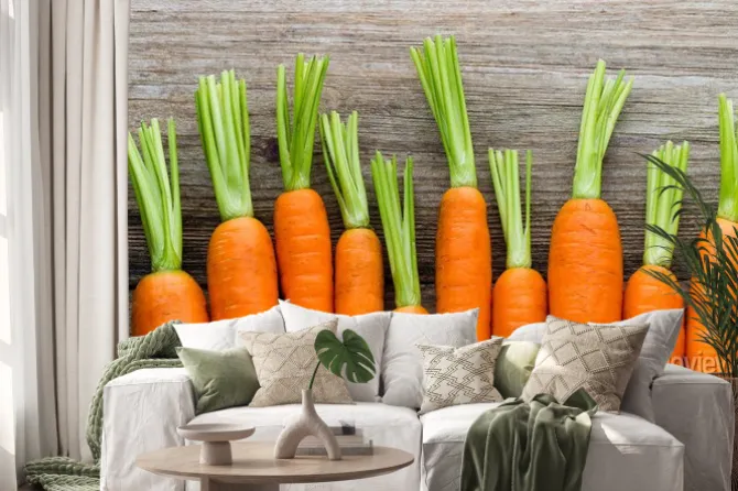 Naklejka: Świeże marchewki pęczek na drewnianych tle.