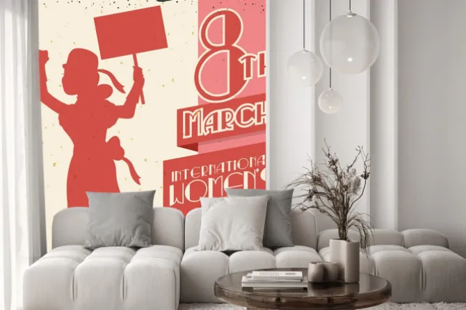 Naklejka: Sylwetka kobiety maszerujących w dzień kobiet retro plakat, ilustracja