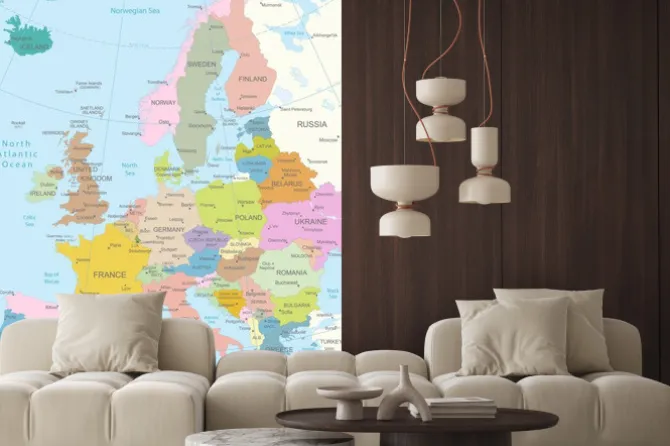 Naklejka: Szczegółowa mapa polityczna europy z nazwami państw