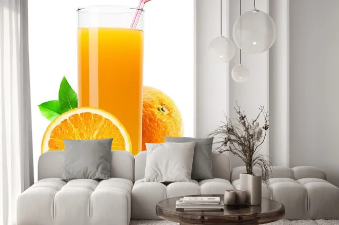 Naklejka: Szklanka soku pomarańczowego na białym tle
