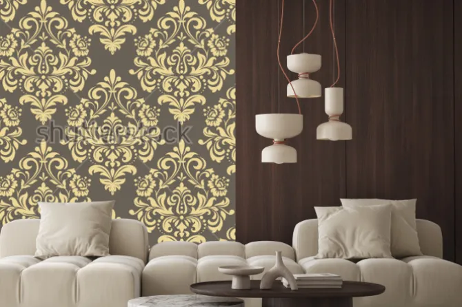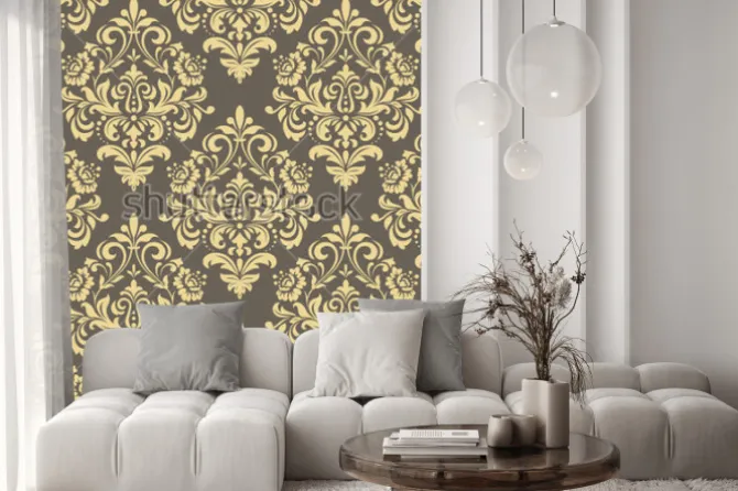Naklejka: Tapeta w stylu baroku. bezszwowe tło. złoty i szary ornament