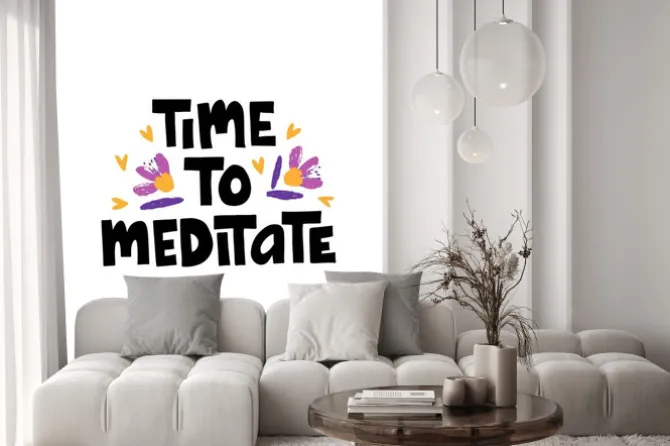 Naklejka: Time to meditate hand drawn vector lettering. stress relief and