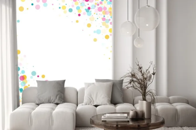 biały, pokój dziecięcy, kropki, dekoracyjne, różowy, żółty