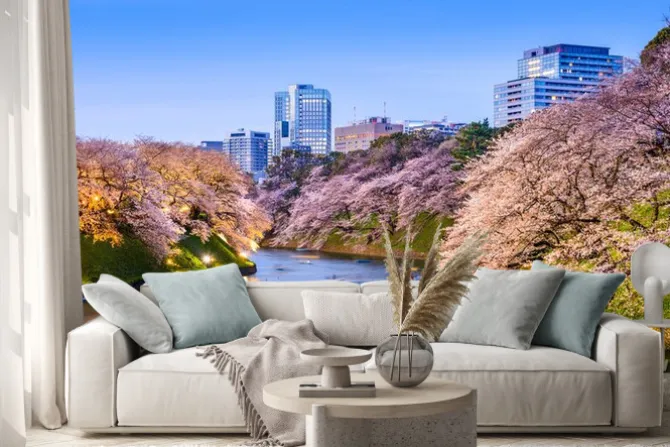 Naklejka: Tokyo imperial fosa na wiosnę