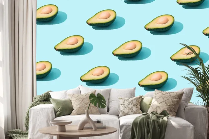 Naklejka: Trendy sunlight summer pattern made with avocado fruit on bright