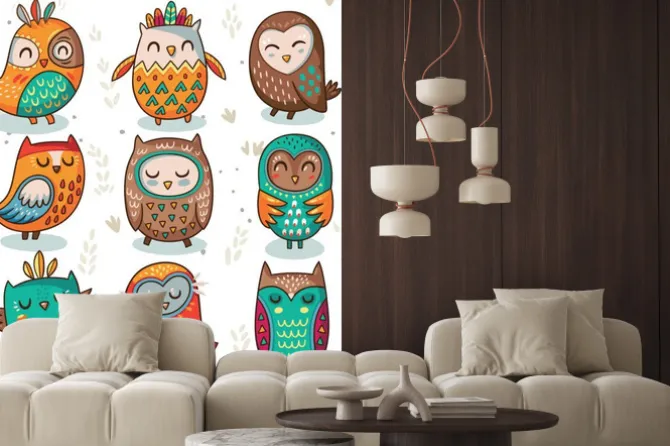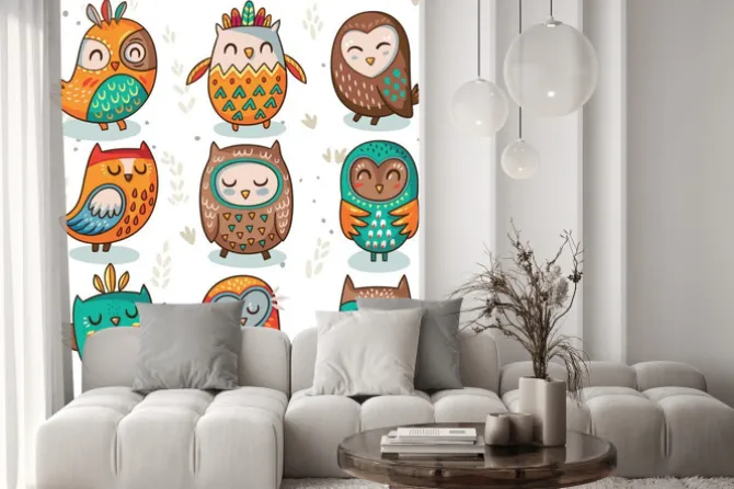 sowa, pióro, ptaki, ornament, dekoracyjne, pokój dziecięcy