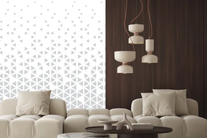 Trójkąty tworzące geometryczny wzór w odcieniach szarości.