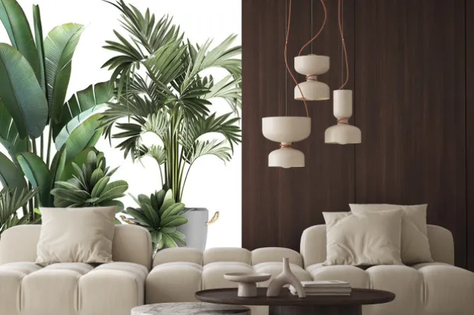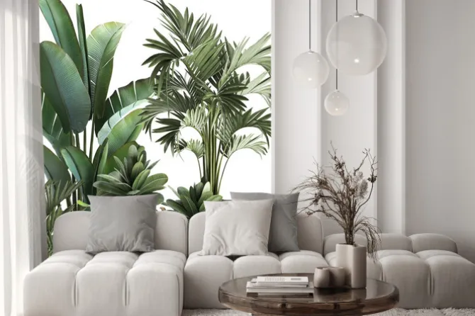 Trójwymiarowa kompozycja z tropikalnych roślin.