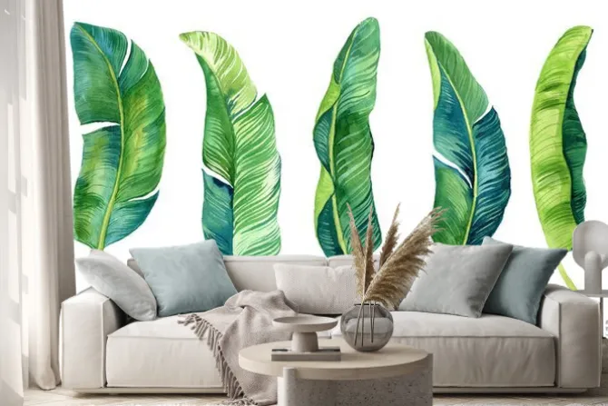 Naklejka: Tropical leaves, palm leaves drawn by hand. set of watercolor