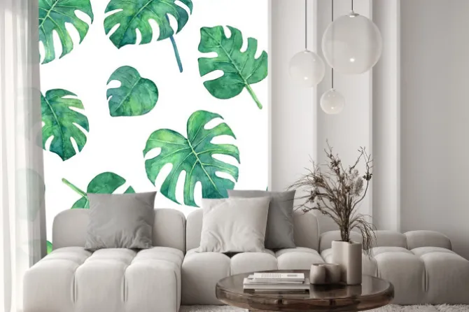 Naklejka: Tropical seamless pattern with monstera leaves. hand painted