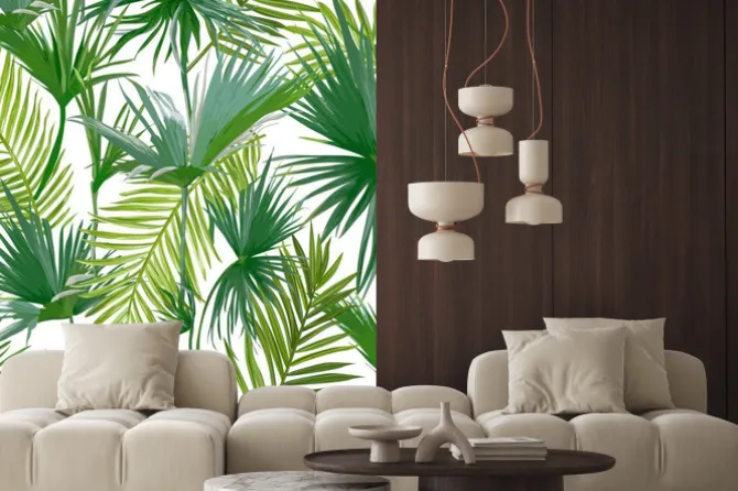 Naklejka: Tropikalna palma liści, dżungli liści bez szwu wektor floral
