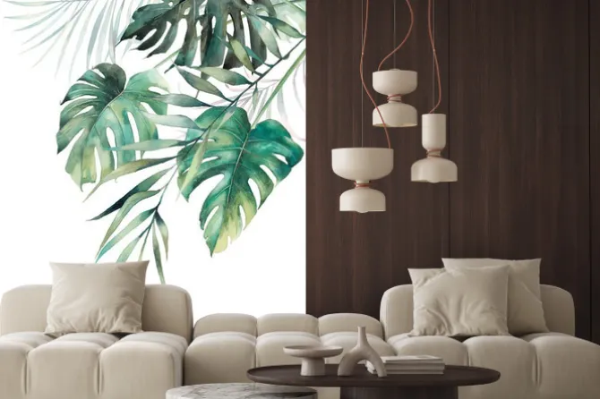 Naklejka: Tropikalne liście monstera i palmowe zielone gałęzie
