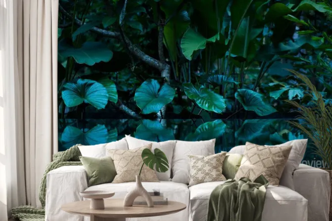 Naklejka: Tropikalny las deszczowy z lustrem wody
