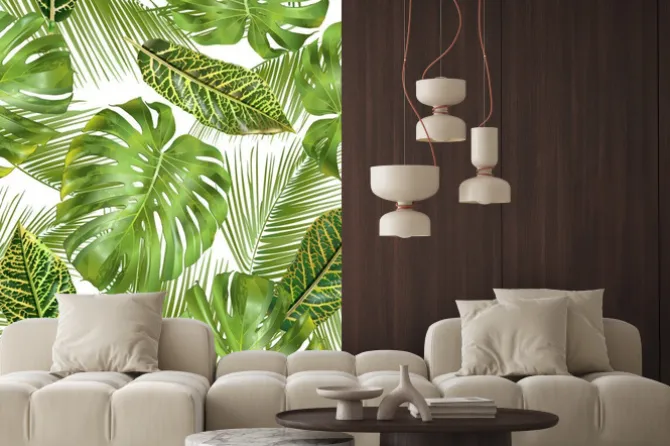 Tropikalny wzór liści.