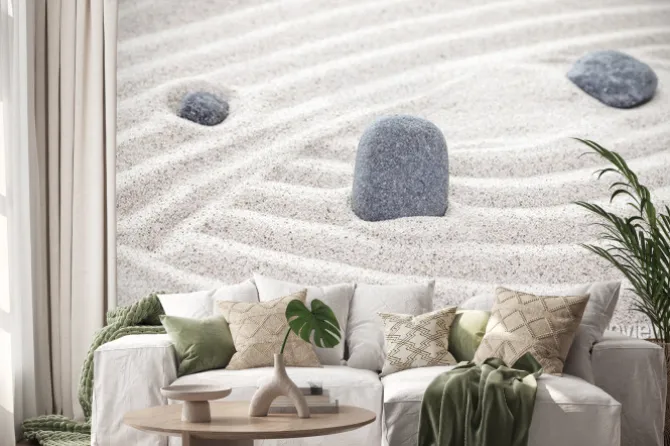 Naklejka: Trzy kamienie w piasku, zen koncepcji