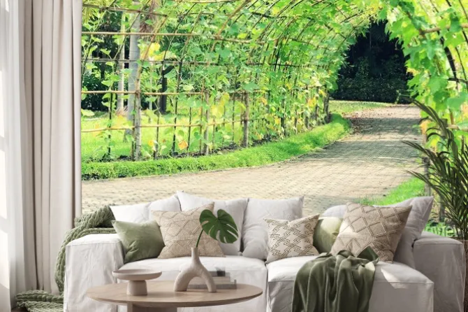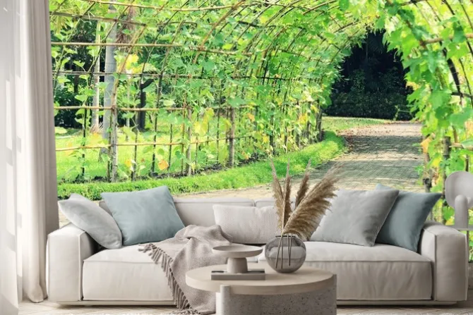 korytarz, bambus, kamienie, tunele, warzywa, zieleń, owoce