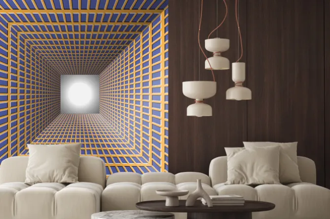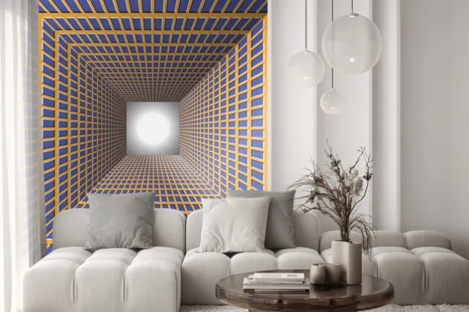Naklejka: Tunel ze ścianami kratkę. abstrakcyjne tło z iluzji optycznej