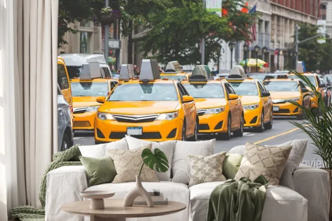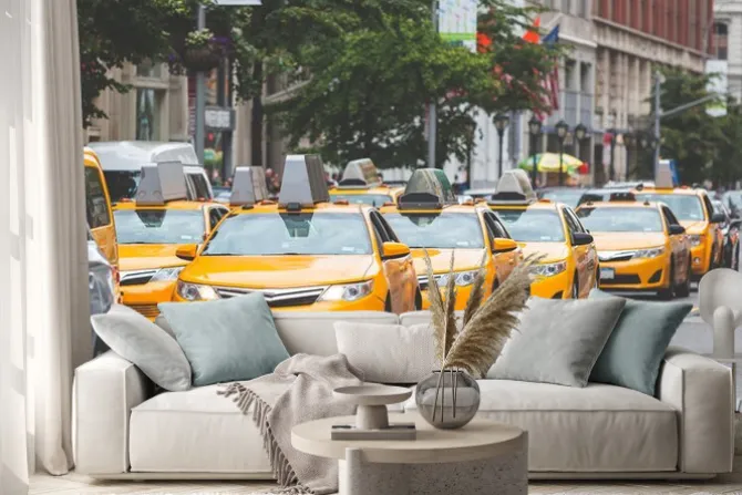 Naklejka: Typowe żółte taksówki w nowym jorku