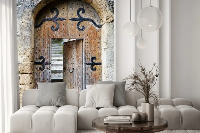 Naklejka: Uchylone stare drewniane drzwi