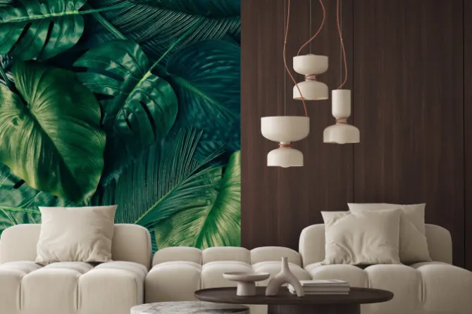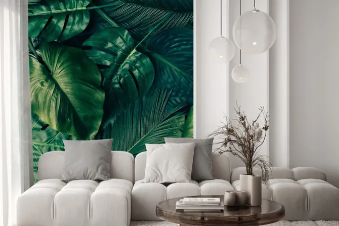 Naklejka: Układ kreatywny tropikalnych zielonych liści. koncepcja wiosna