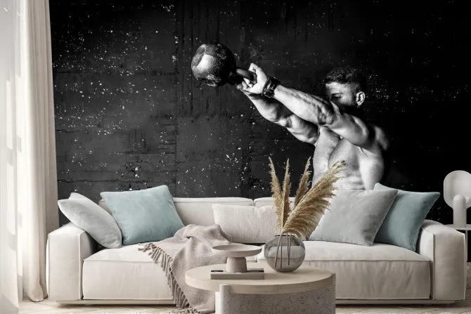 Naklejka: Umięśniony mężczyzna trenujący z kettlebell
