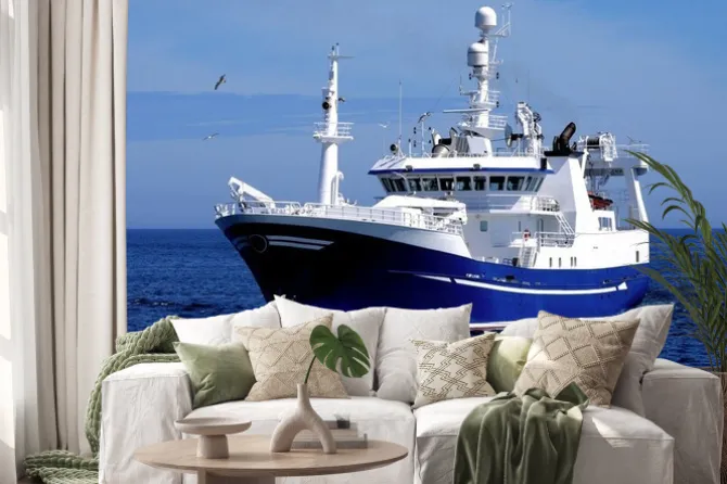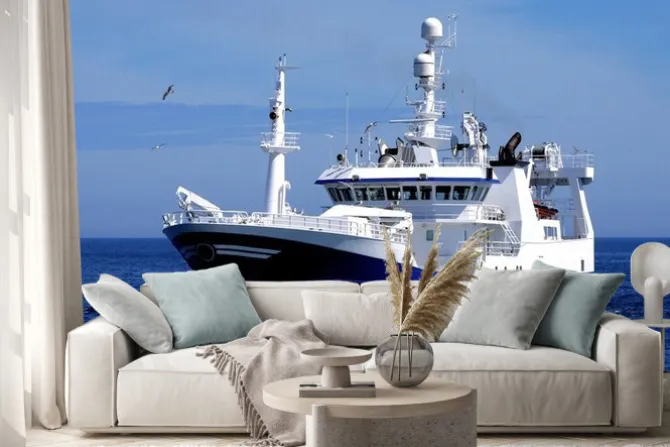 Naklejka: Wędkarstwo p1 statków, statków rybackich trwa do portu wyładunku