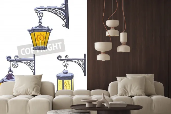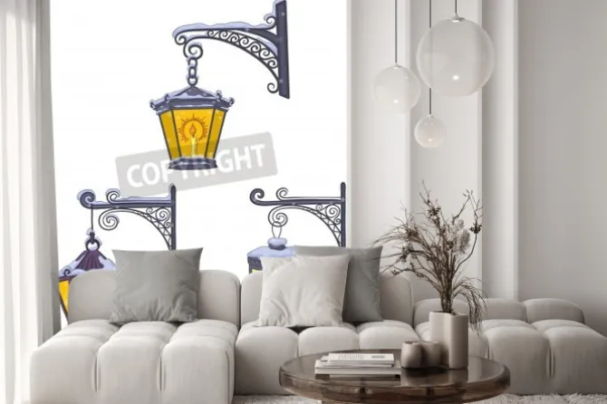 latarnie, ulice, ornament, dekoracyjne, architektura, biały, retro, żółty