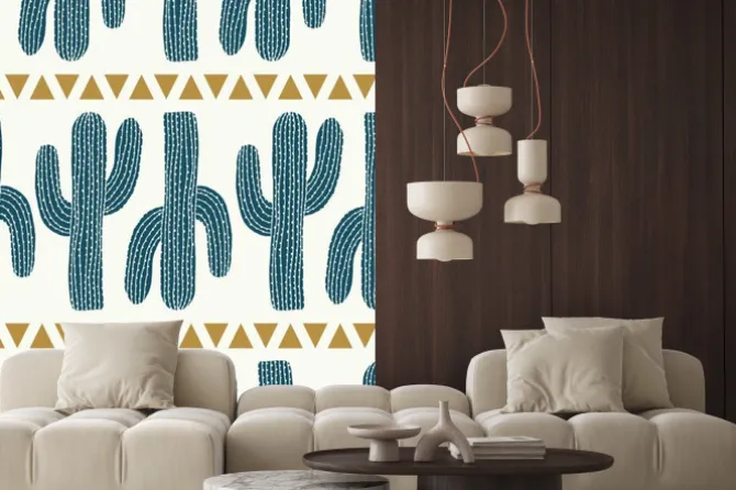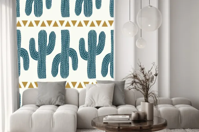 Naklejka: Wektor kaktus pasek i trójkąty krem bez szwu powtórzyć wzór