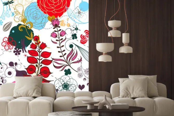 Naklejka: Wektor retro kwiatu (bez szwu deseń)