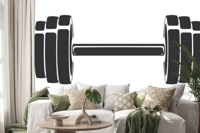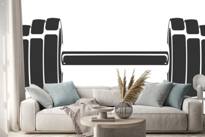 Wektorowa ręka rysująca sylwetka odizolowywająca na białym tle dumbbell. Szablon ikony sportu, symbolu, logo lub innej marki. Nowoczesna ilustracja retro..