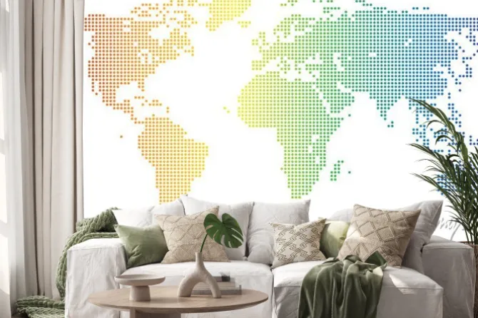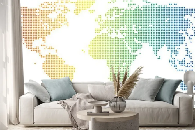 Naklejka: Weltkarte – gepunktet in den regenbogenfarben