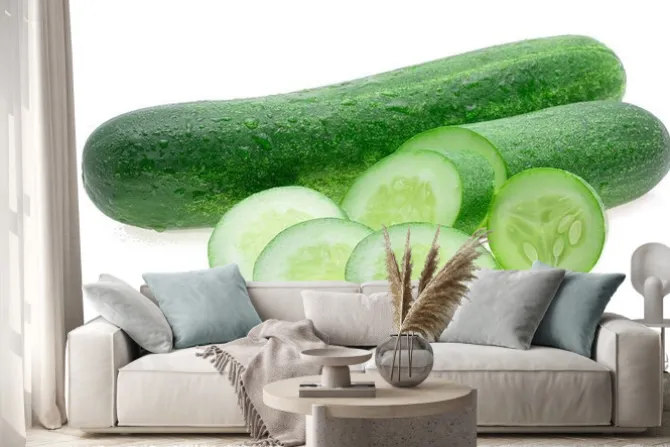 Naklejka: Wet ogórek samodzielnie na białym tle.