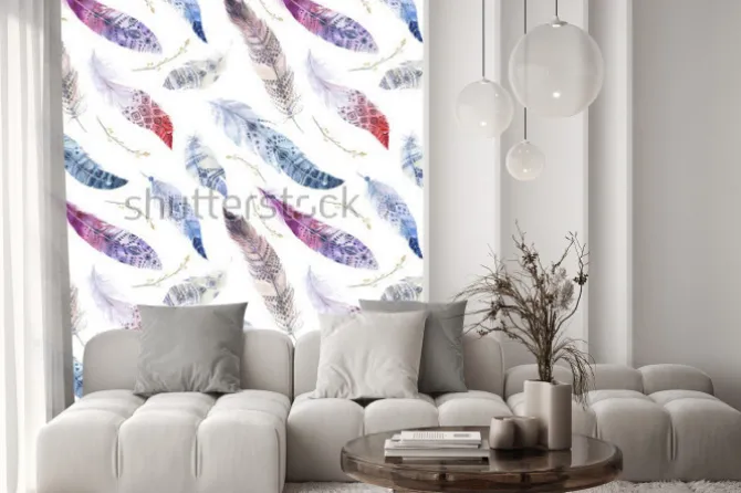 Naklejka: Wzór piór. akwarela eleganckie tło. nadruk w kolorze ekologicznym