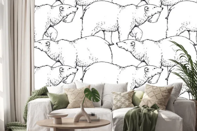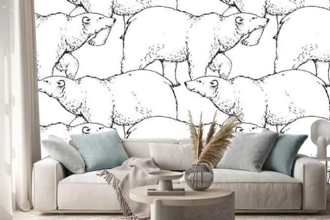 Naklejka: Wzór seamlees ręcznie narysowany chodzenia niedźwiedź polarny